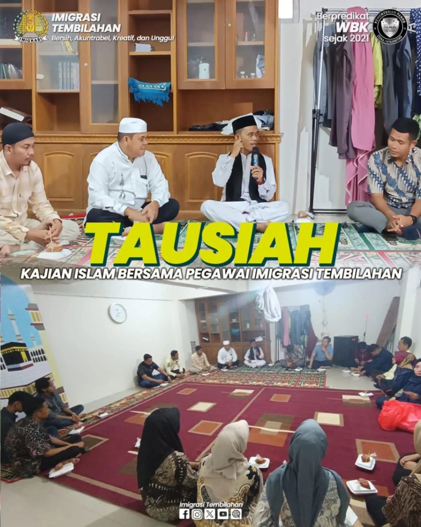 Tembilahan – Menuju akhir pekan, Kantor Imigrasi Kelas II TPI Tembilahan (Imigrasi Tembilahan) gelar kegiatan tausiah agama yang diikuti oleh seluruh pegawai. Tausiah kali ini mengundang Ustadz Ali Murtopo, yang memberikan pembekalan rohani berupa kajian/ceramah tentang konsep rezeki.