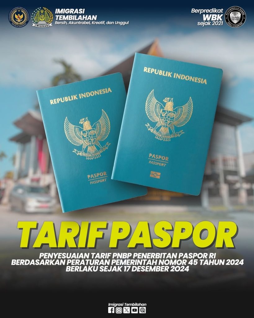 Hai sahabatmido , pertanggal hari ini, 17 Desember 2024 telah diterapkan Tarif Paspor yang baru ya! Hal ini merujuk pada Peraturan Pemerintah Nomor 45 Tahun 2024 tentang Jenis dan Tarif Atas Jenis Penerimaan Negara Bukan Pajak yang Berlaku pada Kementerian Hukum dan Hak Asasi Manusia. Check Infografis berikut untuk informasi selengkapnya!