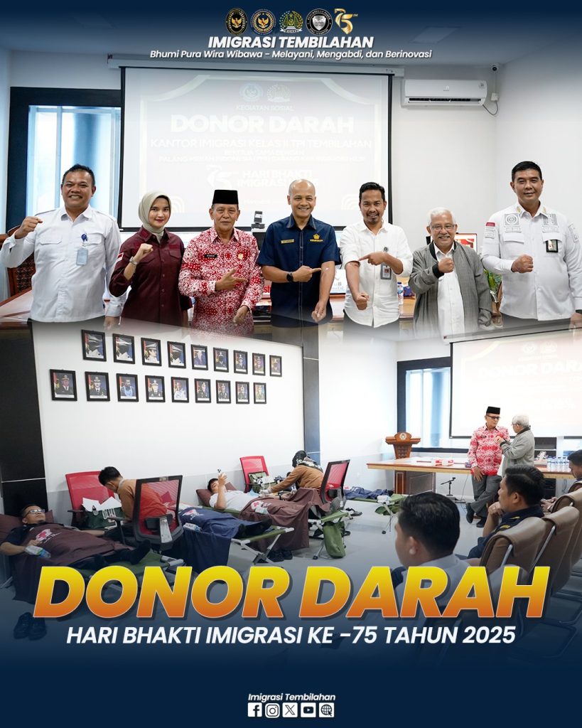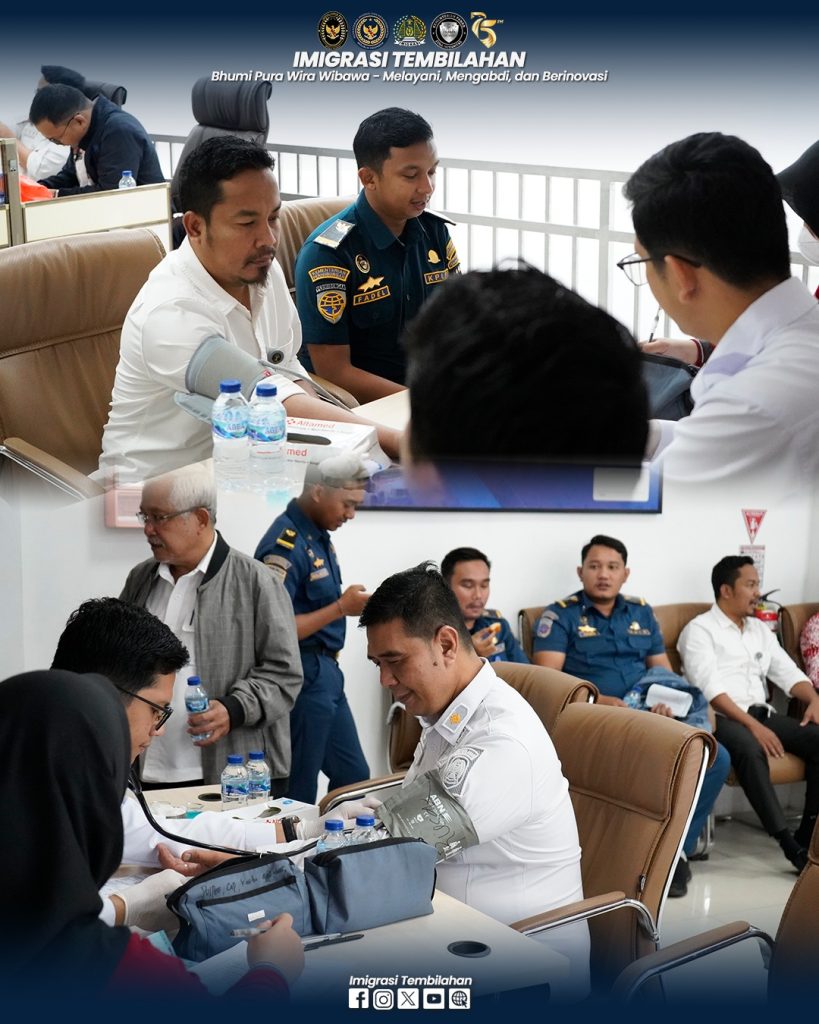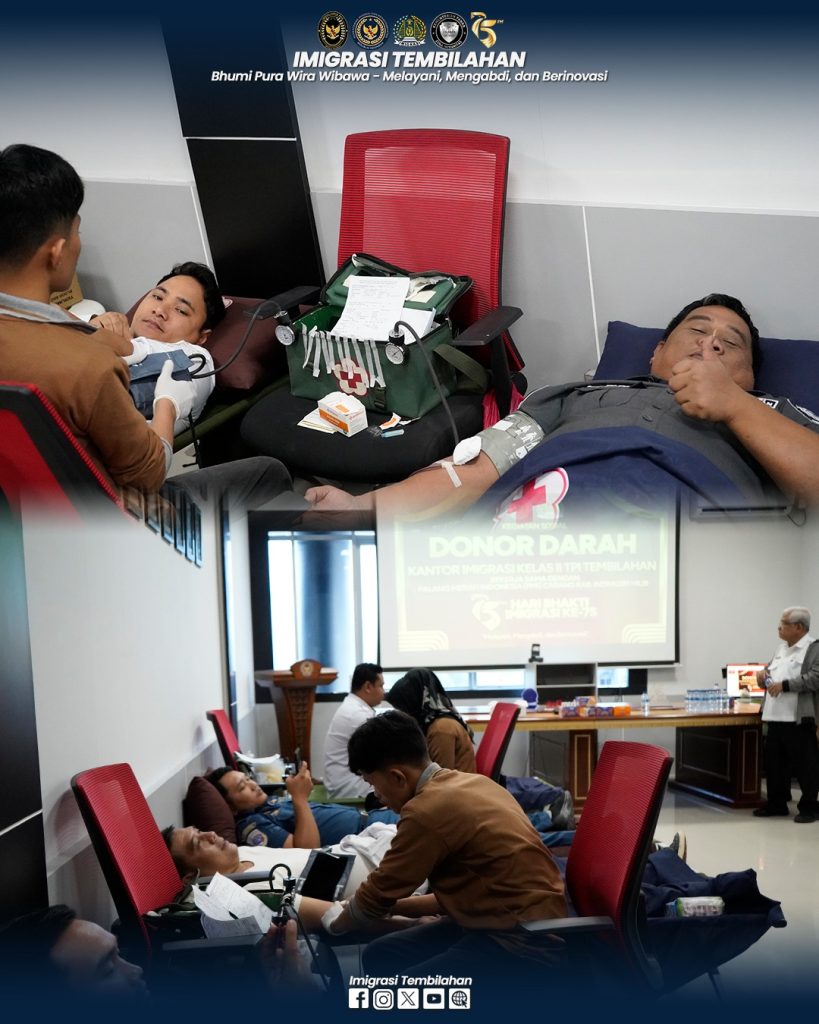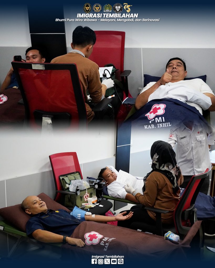 Tembilahan – Kantor Imigrasi Kelas II TPI Tembilahan (Imigrasi Tembilahan), pagi ini menggelar kegaitan Donor Darah, bekerjasama dengan Palang Merah Indonesia (PMI), Cabang Kab. Indragri Hilir. Kegiatan Donor Darah ini dilaksanaan dalam rangka memperingati Hari Bhakti Imigrasi (HBI) Ke-75 yang jatuh pada tanggal 26 Januari nanti.