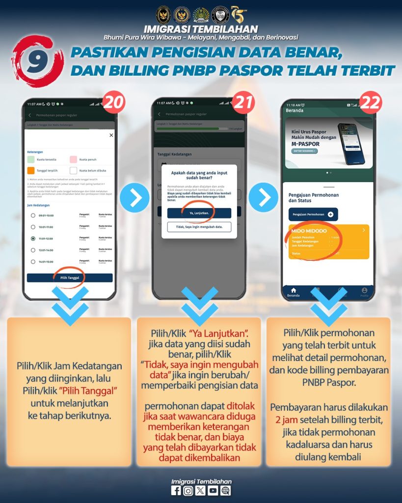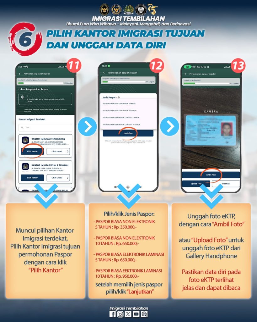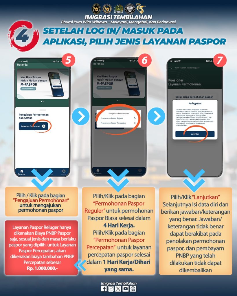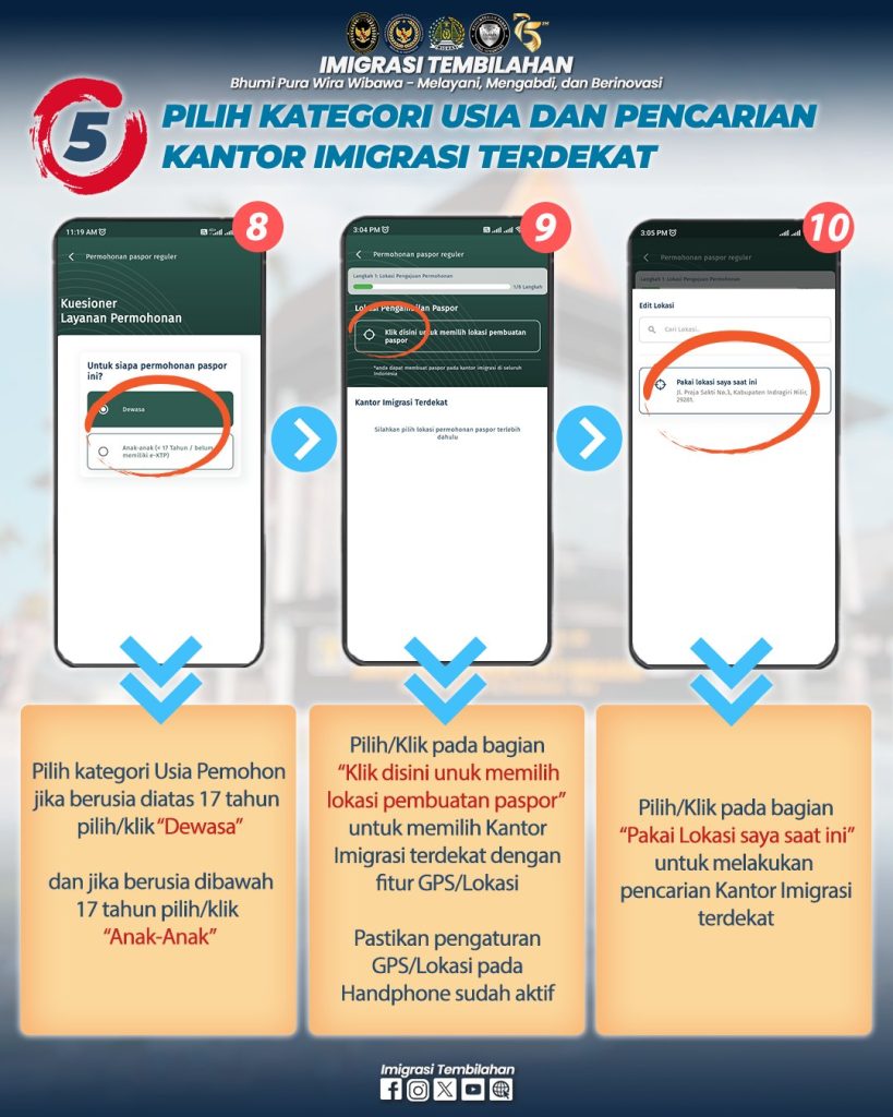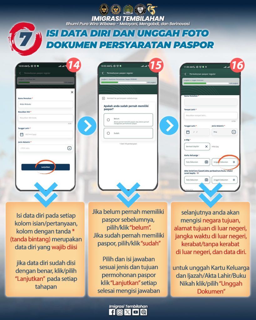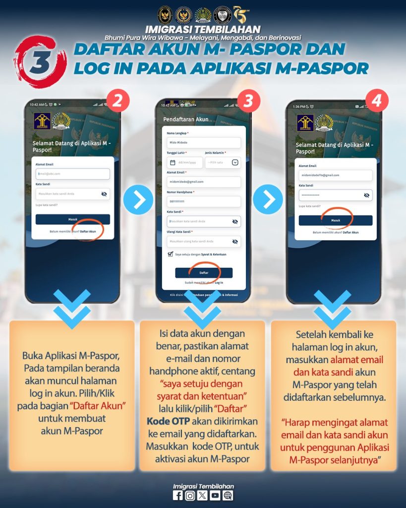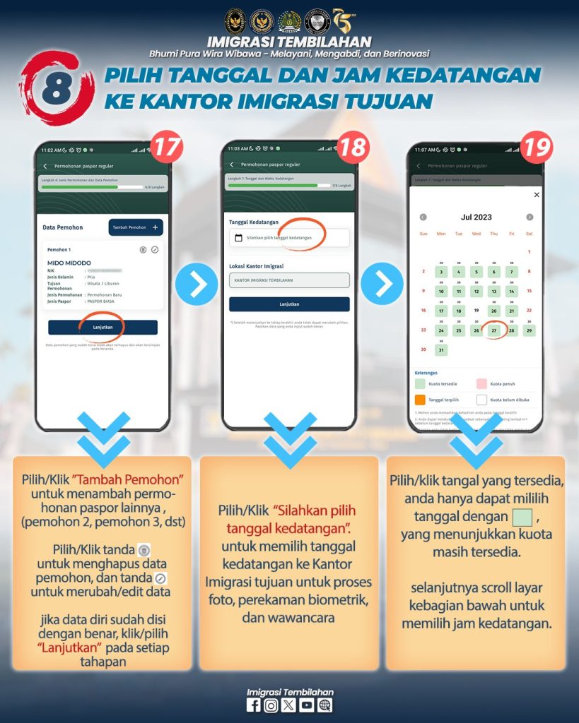 Hai #sahabatmido , berikut tata cara permohonan paspor pada Kantor Imigrasi Kelas II TPI Tembilahan melalui Aplikasi M-Paspor. Permohonan paspor pada Aplikasi M-Paspor diperuntukkan bagi permohonan Paspor Baru (Paspor pertama kali) dan Paspor Penggantian Habis Berlaku ya #sahabatmido . Pada Aplikasi M-Paspor #sahabatmido bisa pilih kantor imigrasi tujuan, hari kedatangan ke kantor imigrasi, dan jenis paspor sesuai kebutuhan. Adapun untuk penggantian Paspor Hilang/Rusak #sahabatmido dapat datang lansung/hubungi Kantor Imigrasi tujuannya.