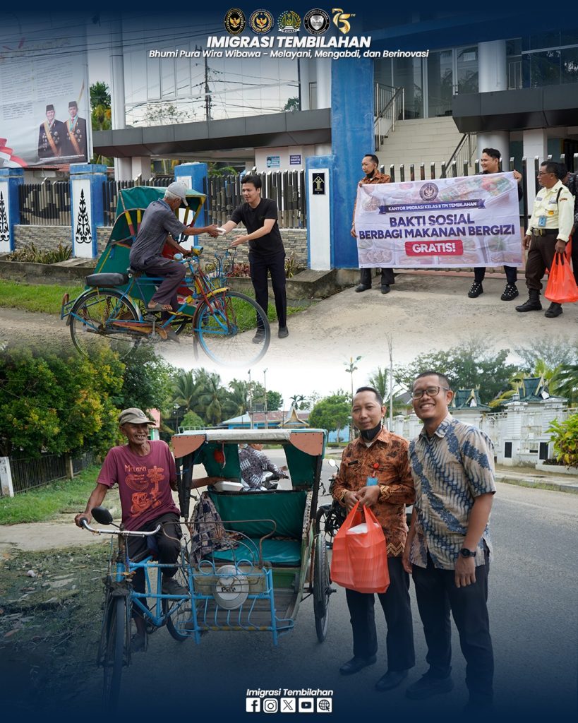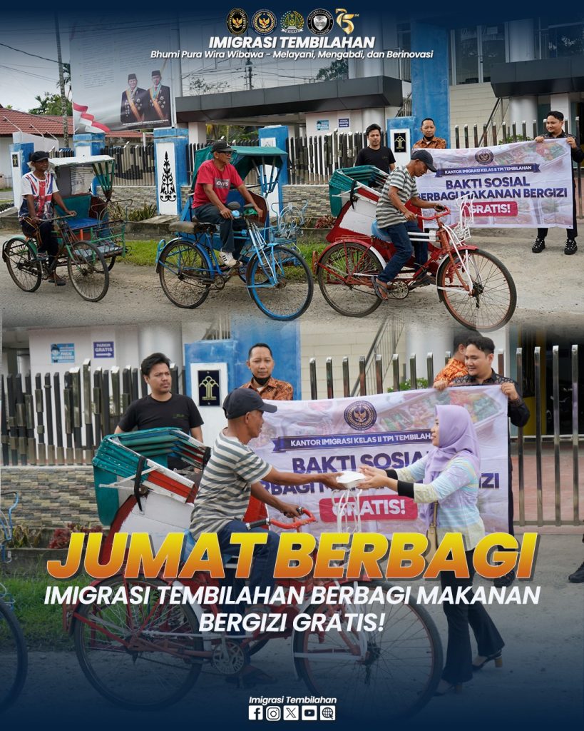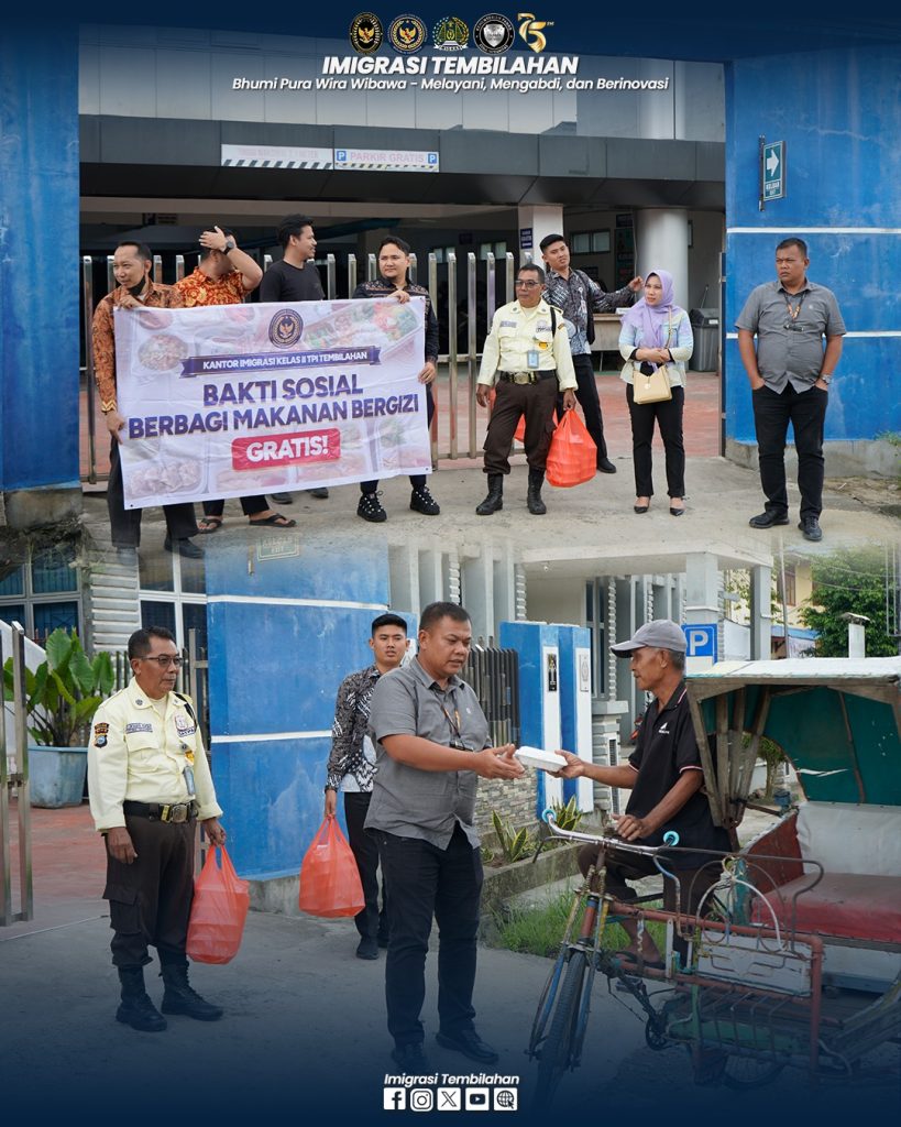 Tembilahan – Kantor Imigrasi Kelas II TPI Tembilahan (Imigrasi Tembilahan), siang ini Jumat (07/02/2025), bagikan makanan bergizi gratis. Kegiatan Bakti Sosial ini dilaksanakan di depan gedung Kantor Imigrasi Tembilahan, pejabat struktural dan pegawai tampak membagikan makanan ke masyarakat sekitar.
