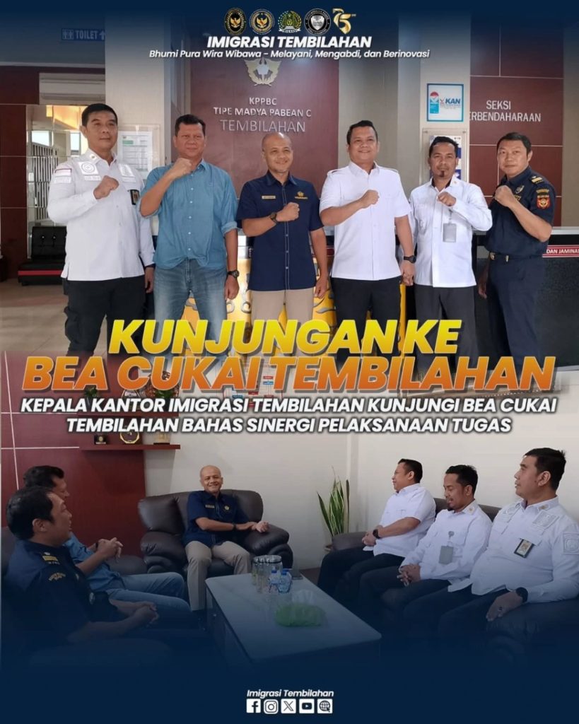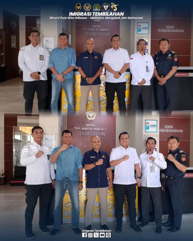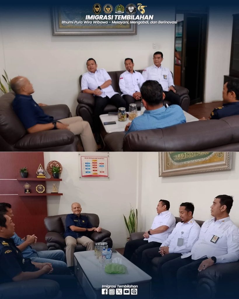 Kunjungan Kakanim Tembilahan selain sebagai bentuk silaturahmi dan perkenalan diri sebagai Kepala Kantor yang baru, dikesempatan yang sama Kakanim bersama Kepala Bea Cukai membahas atensi pelaksanaan tugas dan fungsi. Bea Cukai merupakan mitra kerja Imigrasi dalam pelaksanaan tugas pemeriksaan di perbatasan wilayah pada kegiatan keluar/masuk wilayah Indonesia.