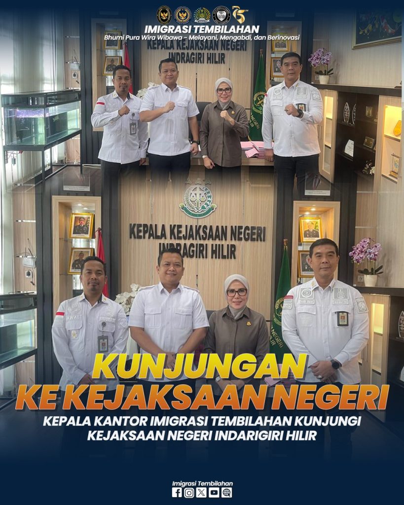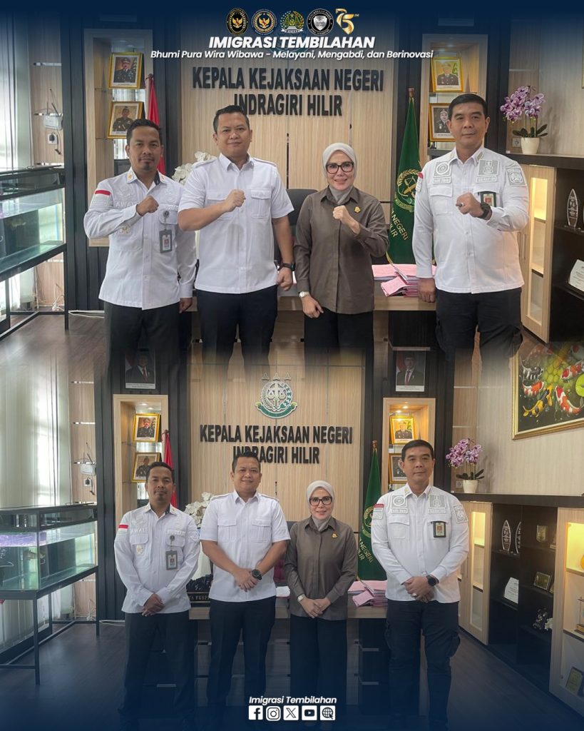 Tembilahan – Hari ini, Rabu (12/03/2025) Kepala Kantor Imigrasi (Kakanim) Kelas II TPI Tembilahan, Bpk. Ryang Yang Satiawan, melaksanakan kunjungan ke Kejaksaan Negeri Indragiri Hilir. Kunjungan kali ini merupakan salah satu agenda rangkaian kunjungan Kepala Kantor Imigrasi (Kakanim) ke Instansi-Instansi mitra kerja dalam rangka silaturahmi dan koordinasi, dimana Bpk. Ryang R. Satiawan kini dipercaya memimpin Kantor Imigrasi Tembilahan setelah pelantikannya pada tanggal 25 Februari lalu, menggantikan Kakanim sebelumnya Bpk. Yoga Aria Prakoso Wardoyo.